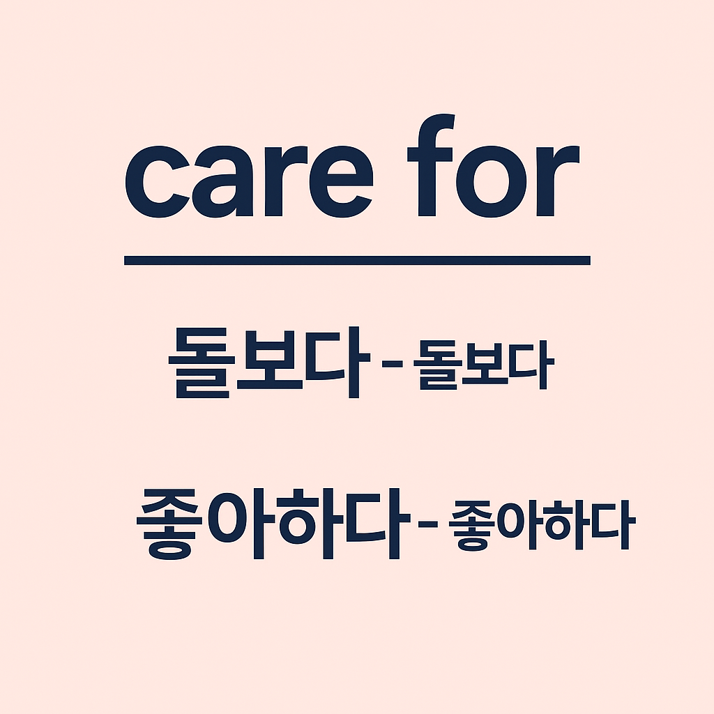 care for = 마음을 주는 행위 → 돌보다 / 마음이 끌리는 감정 → 좋아하다